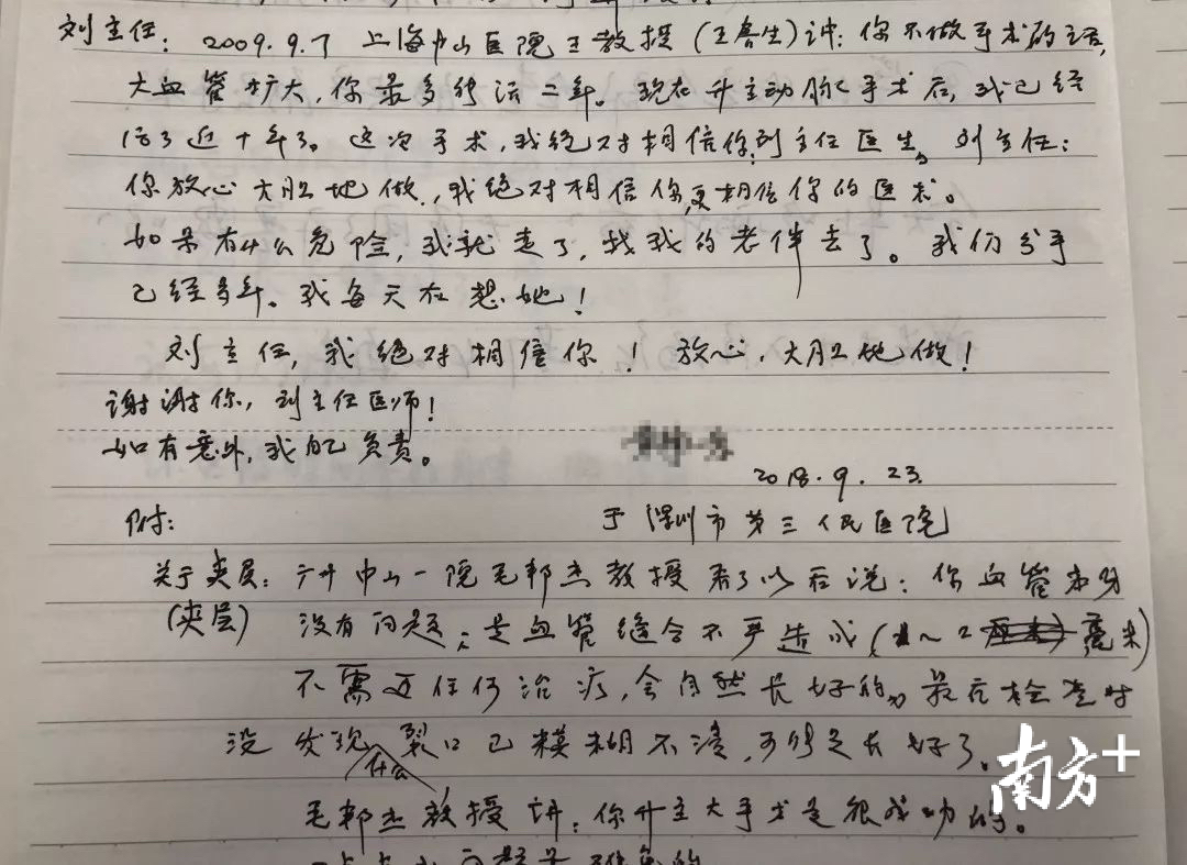 这是一位82岁老人写给深圳市第三人民医院肝胆外科刘嘉林主任的一封信中的内容。