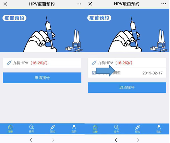 11月27日上午9:00以后,中签者可登陆“HPV疫苗摇号”系统开始预约,可进系统进行预约的时间截至11月28日24:00。
