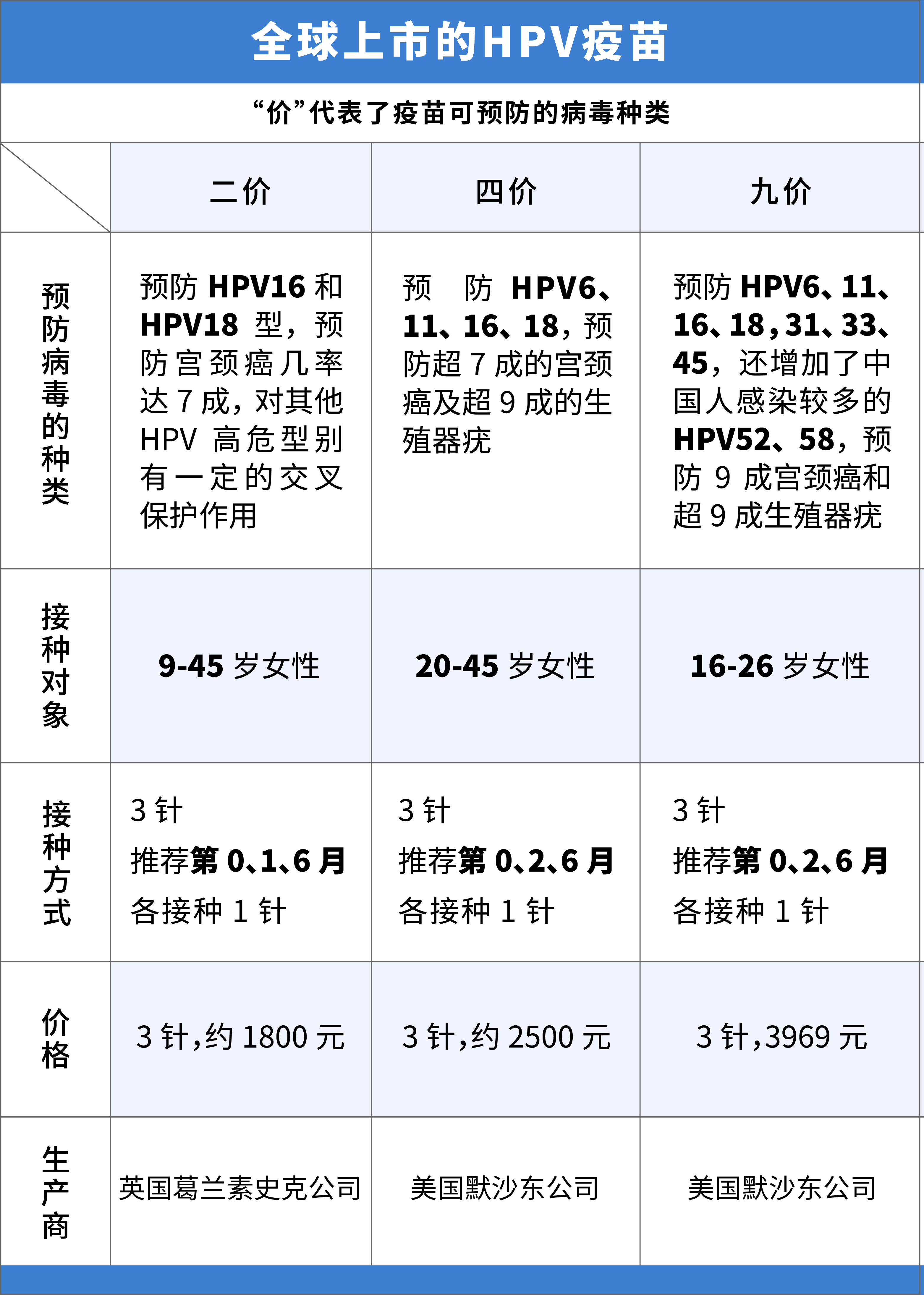 二价疫苗适用于9岁-45岁的女性,四价疫苗适用于20岁-45岁的女性。