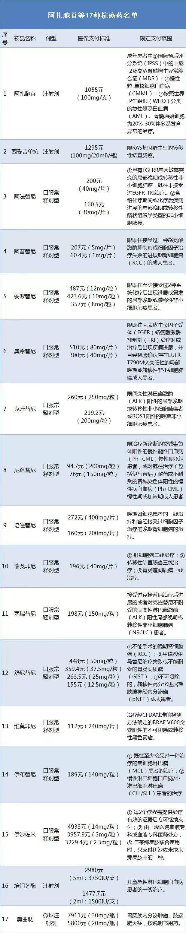 2、哪些肿瘤患者可以享受17种抗癌降价药的大病医保待遇?