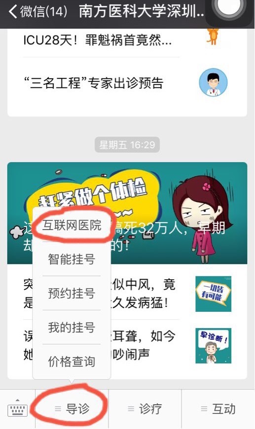 南方医科大学深圳医院(以下称“南医大深圳医院”)的互联网医院可通过该院的公众号进入。