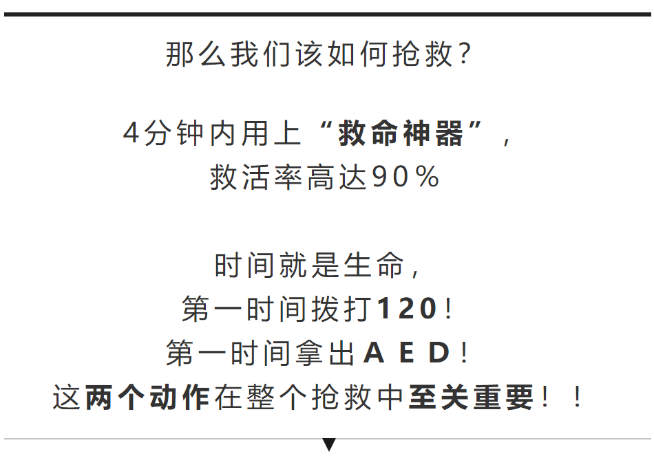 如果一个人心脏突然停止跳动,4分钟内用上AED,救活的几率高达90%!