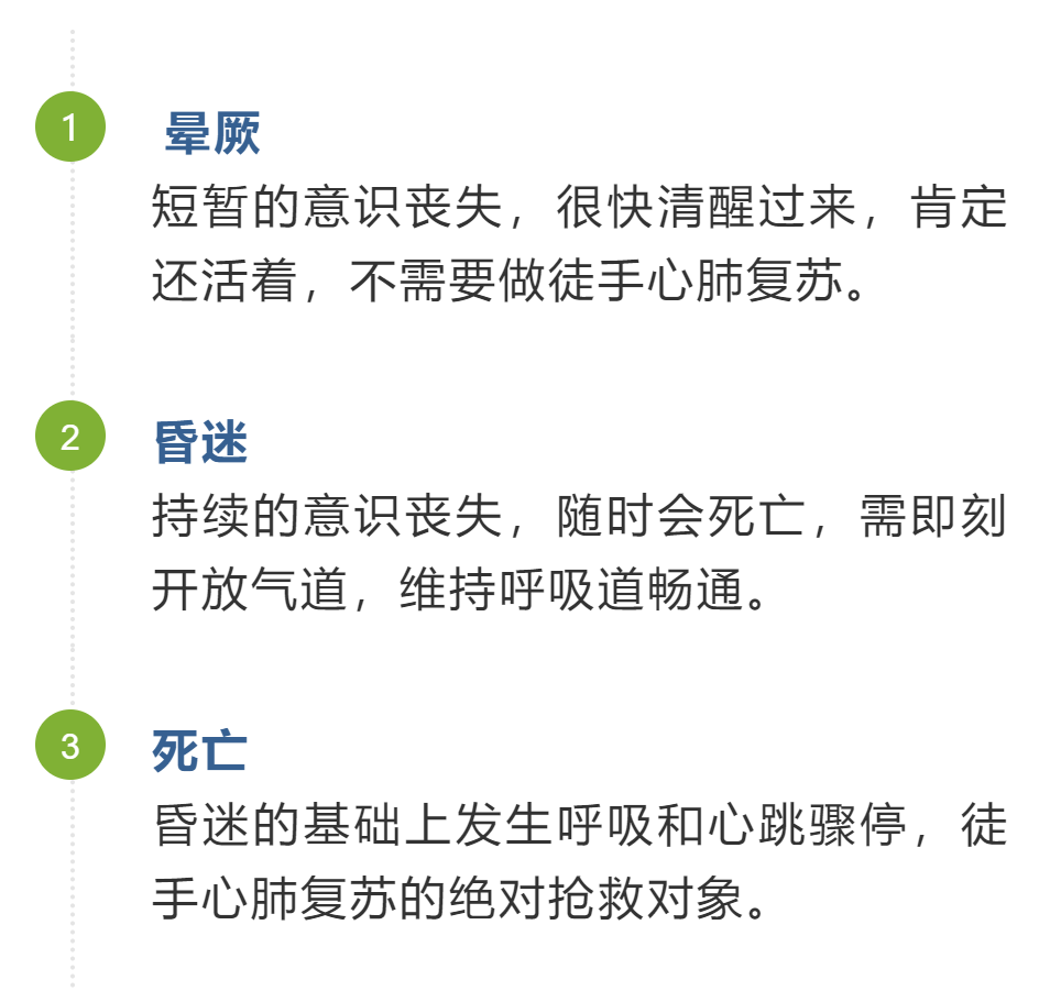 发现有人突然倒地或意识丧失,在判断现场环境安全的前提下,请务必争分夺秒快速识别(争取在5~10秒钟内完成)患者状况。
