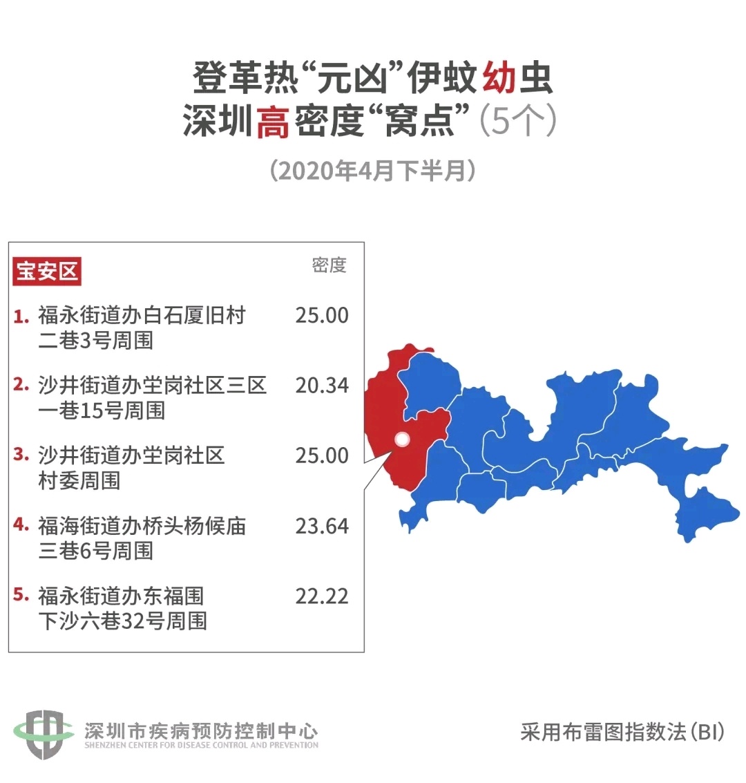 5月9日,深圳市疾控中心发布了4月下旬(4月16日-30日)的全市伊蚊密度监测结果,超2成监测点不合格。