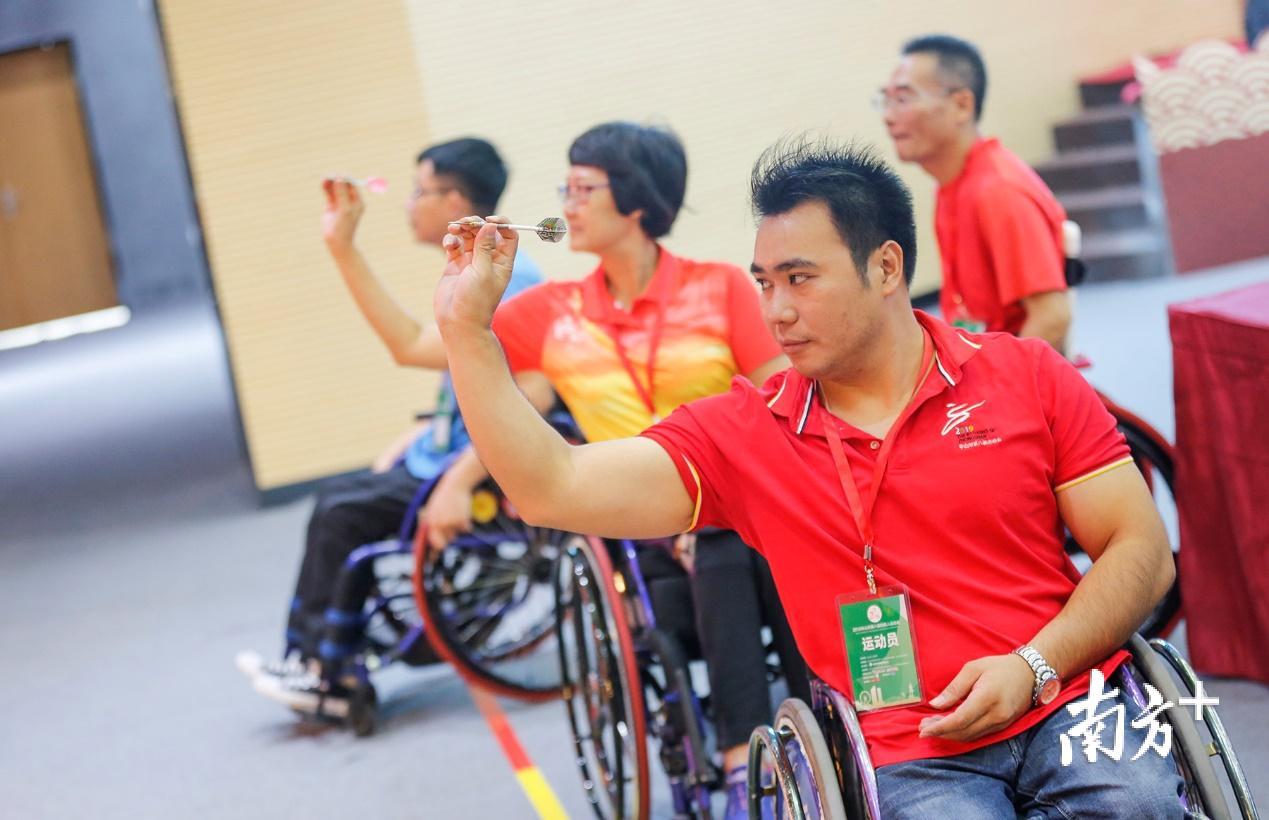 8月26日上午,飞镖比赛在港口游戏游艺产业城正式开赛。飞镖比赛是是本届残运会新设的比赛项目,这项运动极大地考验这运动员的注意力和协调性。