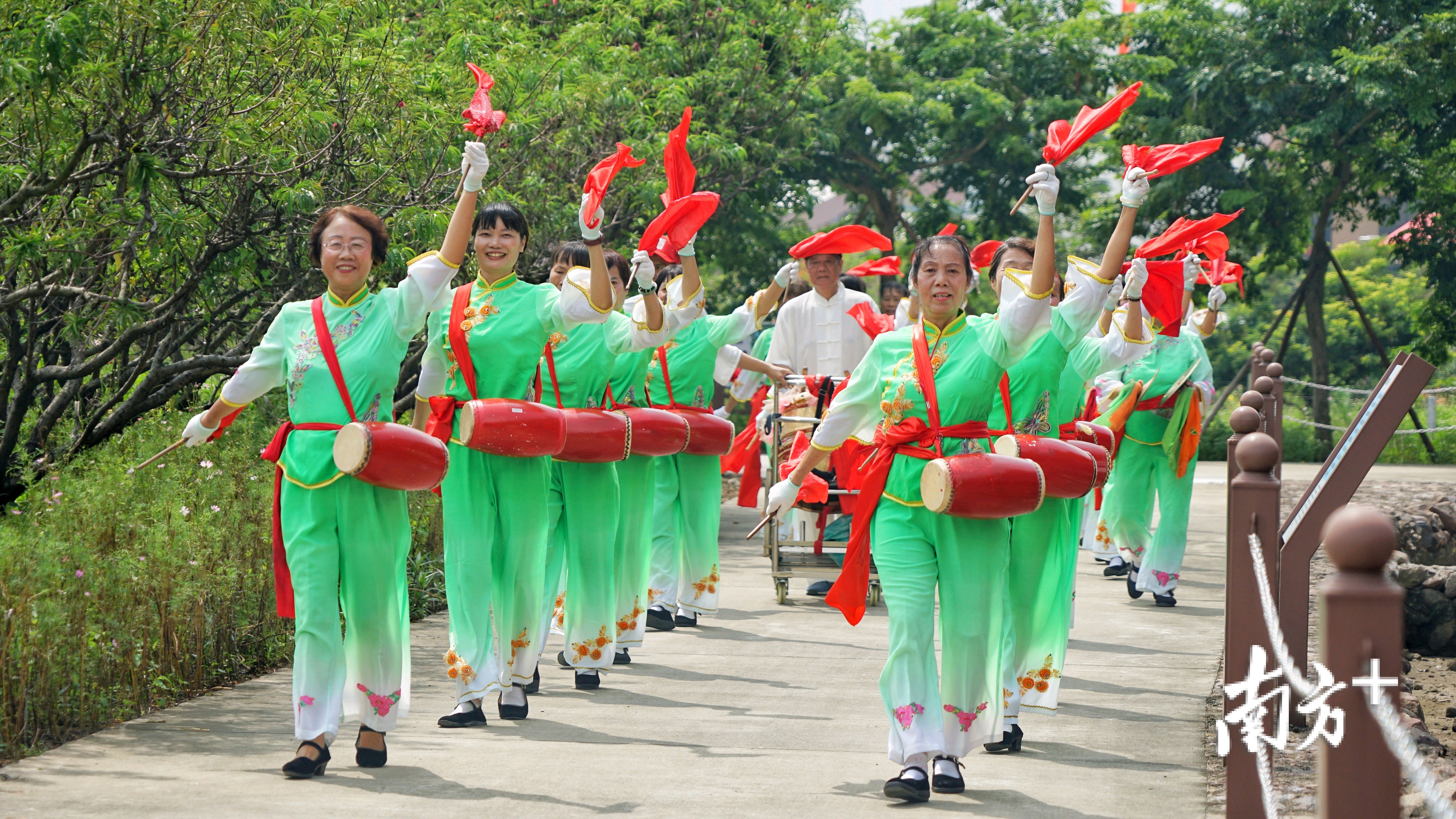 活动中,由醒狮队、我舞我美奔小康队、飘色队、麒麟舞队、腰鼓队、舞龙队组成约180人的队伍沿着海蚀遗址景区步道开展文化巡游。
