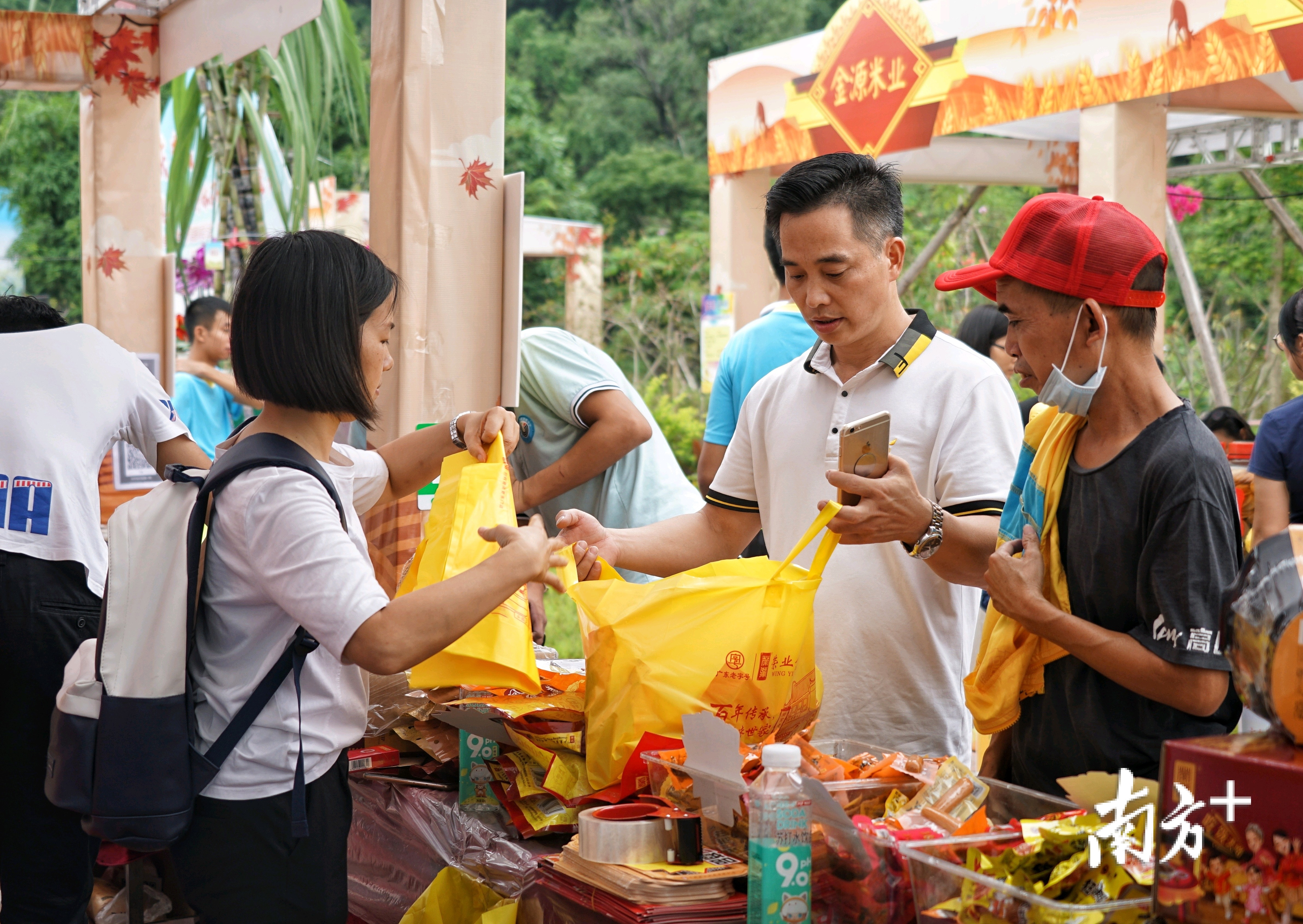 市民在活动中品尝、购买心仪的农产品。
