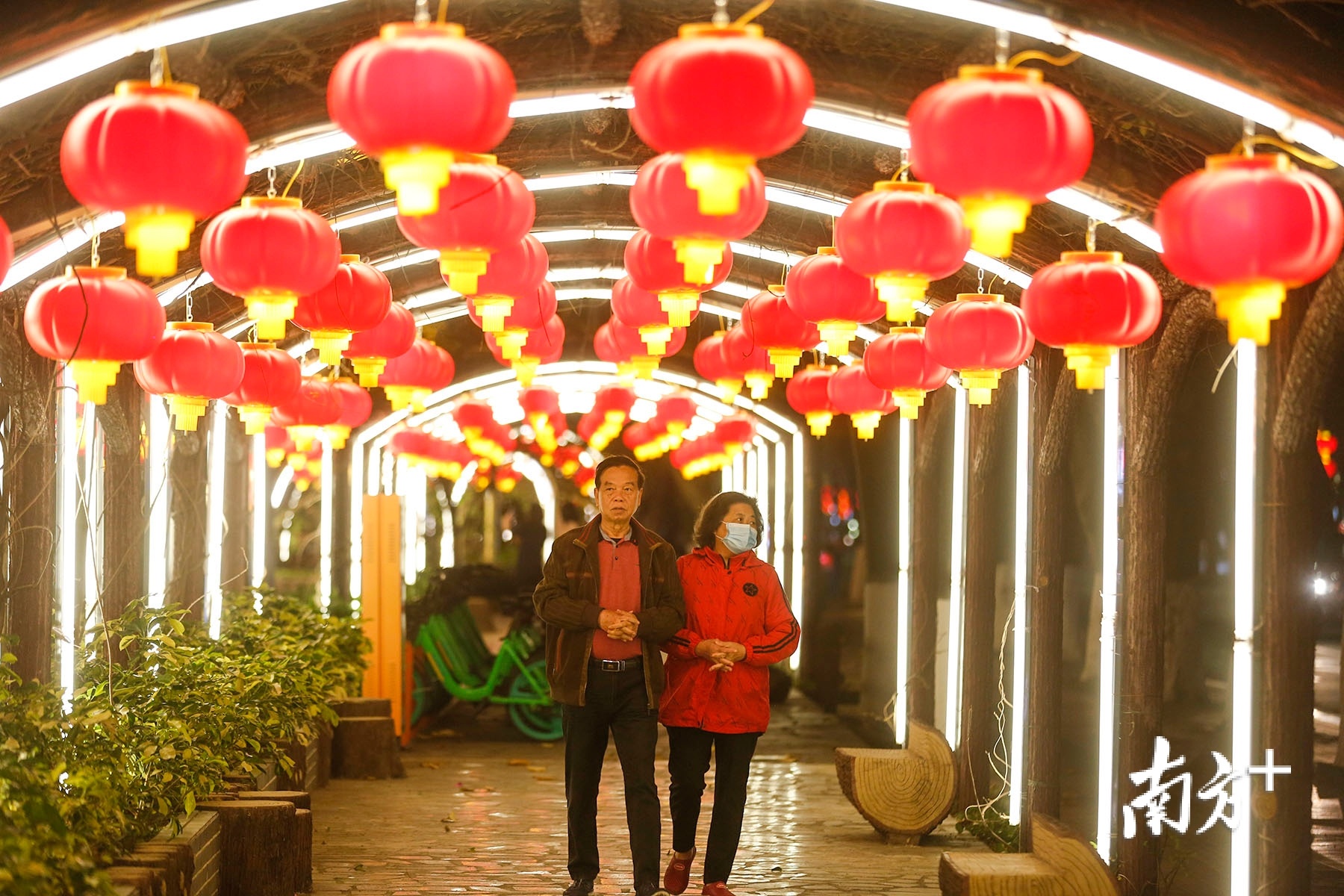 春节的脚步越来越近,年味也越来越浓厚,为迎接新春佳节同时避免人群过于聚集,今年中山市取消了大型的花灯会,以分散在部分公园的形式开展。2月8日晚,中山市紫马岭公园南门广场,不少市民在花灯前合影留念。