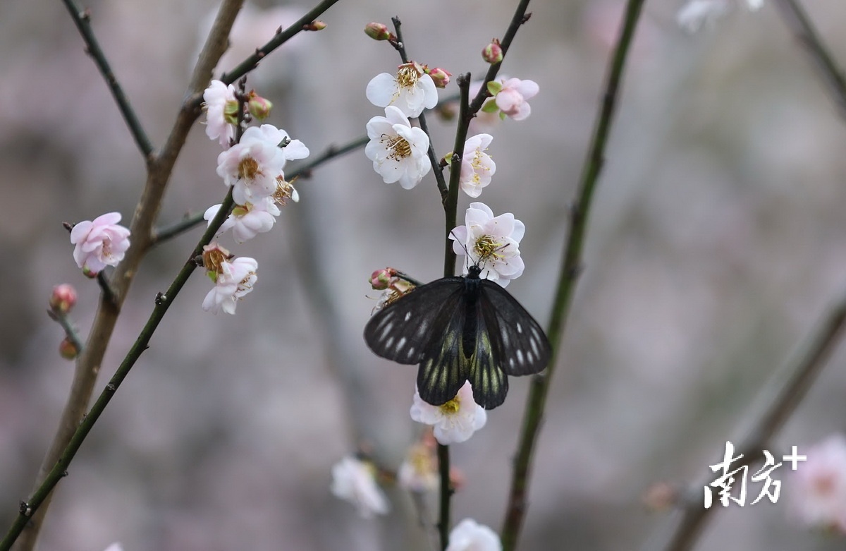开满枝头的梅花吸引了不少蜜蜂和蝴蝶。 南方+ 叶志文 拍摄