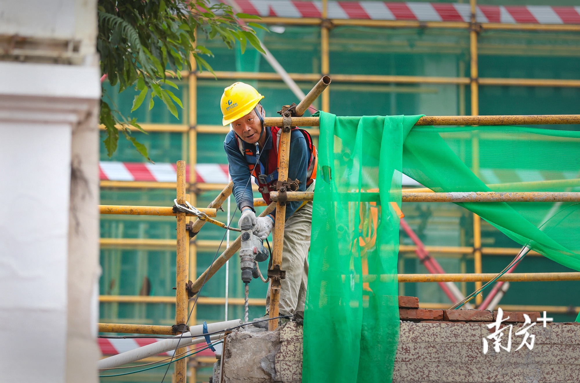 4月22日,工人在孙文西路上的建筑上施工。 南方+ 叶志文 拍摄