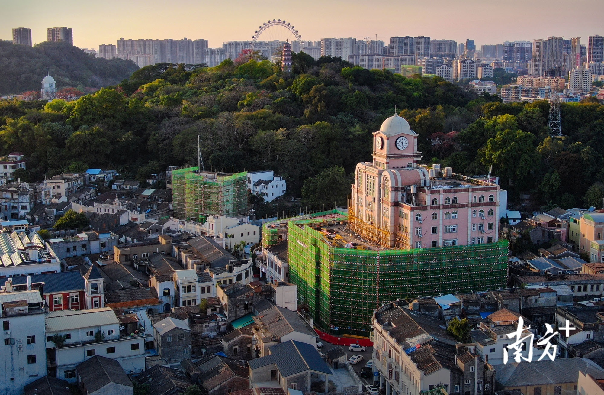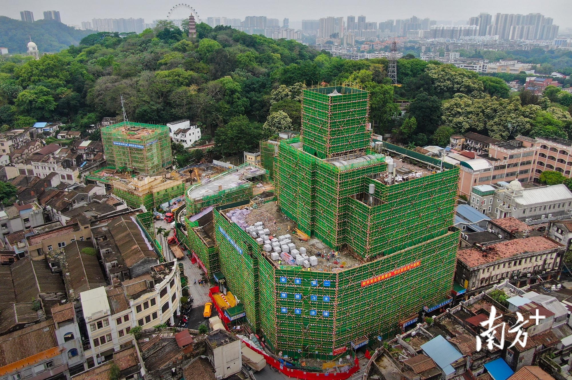4月22日,中山百货大厦整栋建筑都“披”上绿色的安全防护网,活化工程在不断推进。 南方+ 叶志文 拍摄