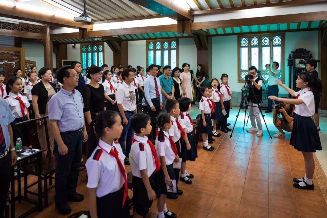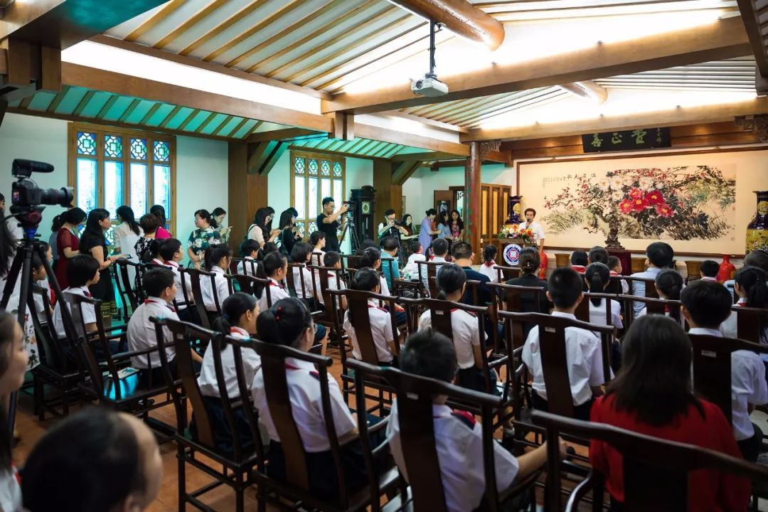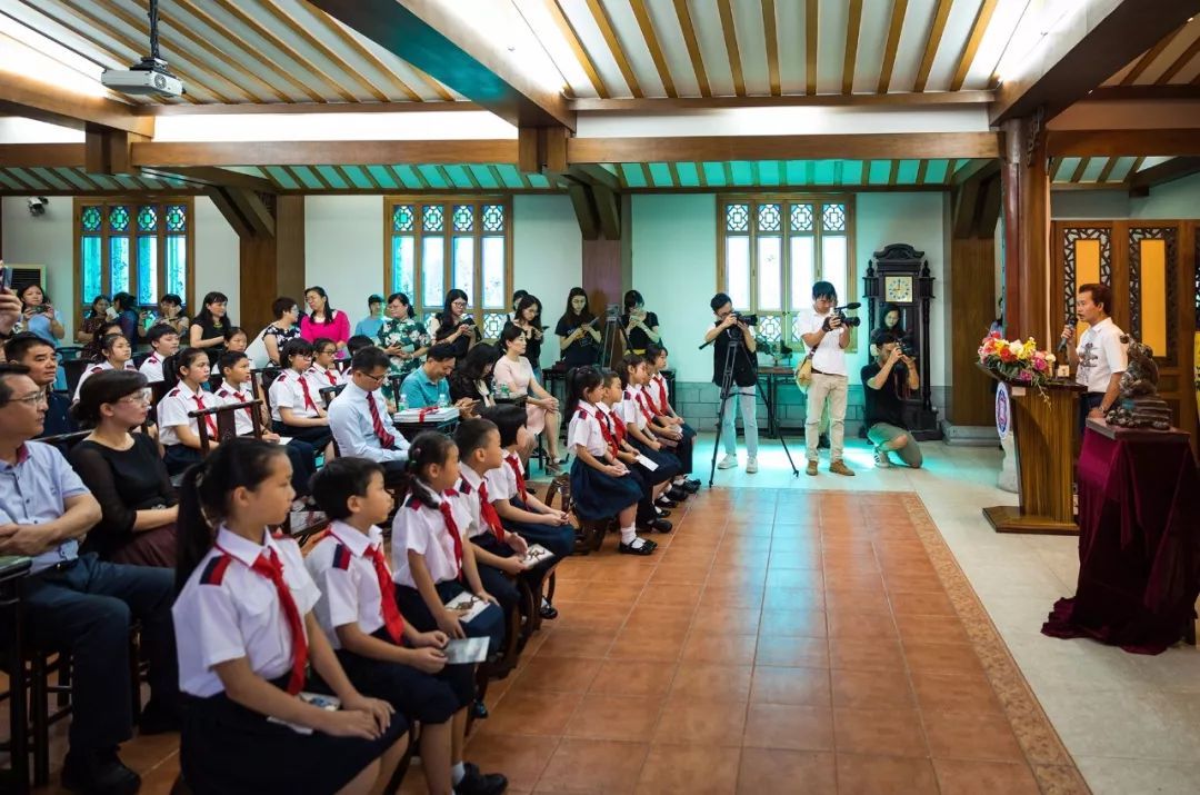 捐赠仪式首先在古色古香的善正堂举行。首先,东山培正小学叶志丹校长致辞,介绍了许鸿飞先生的艺术成就,对许鸿飞先生慷慨捐赠、关心学校发展和少年儿童的成长表示衷心的感谢。越秀区教育局陈晓副局长对此次“艺术家进校园”活动给予充分肯定,大赞培正办学的大格局大视野。她指出东山培正小学引进“艺术家进校园”、“艺术品进校园”,完美地将艺术素养培育和文化弘扬、传承融合,体现了许院长对青少年的关爱,体现了东山培正小学植根中华优秀传统文化的本源,保持社会主义先进文化的方向不动摇。