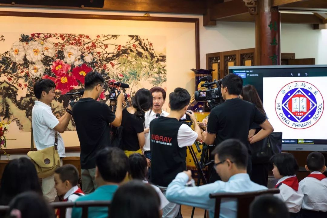 许鸿飞先生、越秀区人大黄仰辉主任、区教育局陈晓副局长、培正中学吕超校长、星耀悦教育科技有限公司郑欣董事长、广州市培正同学会王达雄会长、东山培正小学叶志丹校长及黄曼君书记,以及部分师生代表参加了捐赠仪式。