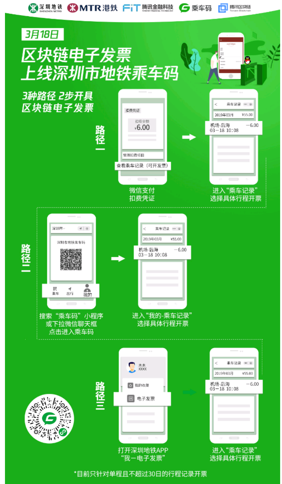 3月18日,全国首张轨道交通区块链电子发票在深圳地铁福田站开出,标志着深圳市地铁乘车码正式上线区块链电子发票功能。据腾讯方面19日公布的数据显示,截至18日20时17分,用户通过乘车码开具区块链电子发票数量已突破一万张。