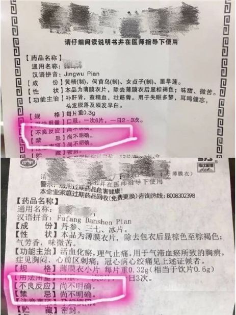 七、小心购买“不良反应”和“禁忌”都不明确的药物。如果药品说明书中,没有标明“不良反应”和“禁忌”,这类药品最好谨慎购买。