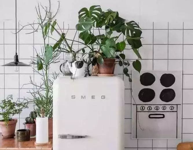 还有一些为了厨房的美观,会将盆栽植物直接放在冰箱上面,以为既能够净化空气,又能够节省空间面积。