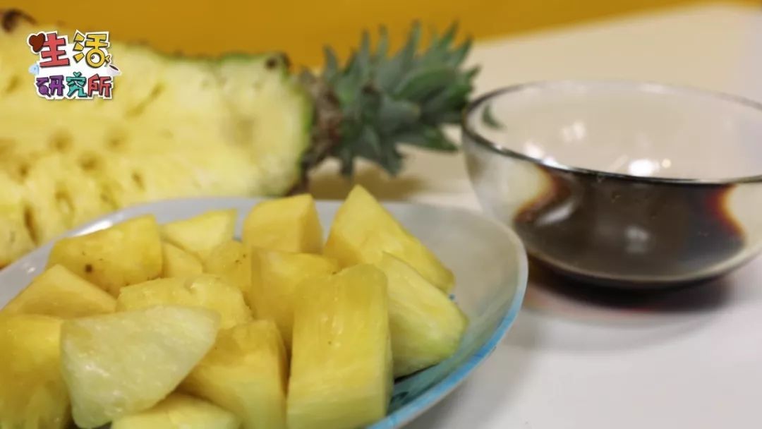 将菠萝削皮处理后切块,蘸酱油吃就可以啦~酱油中的咸味,很好的综合了菠萝让人舌头发麻的菠萝蛋白酶,是很特别的味道哦。