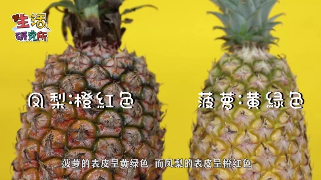 菠萝表皮一般呈黄绿色,这是因为我们市面上一般看到的都是所谓的巴厘菠萝。而凤梨一般为橙红色,则是来自台湾的品种改良所造成的。