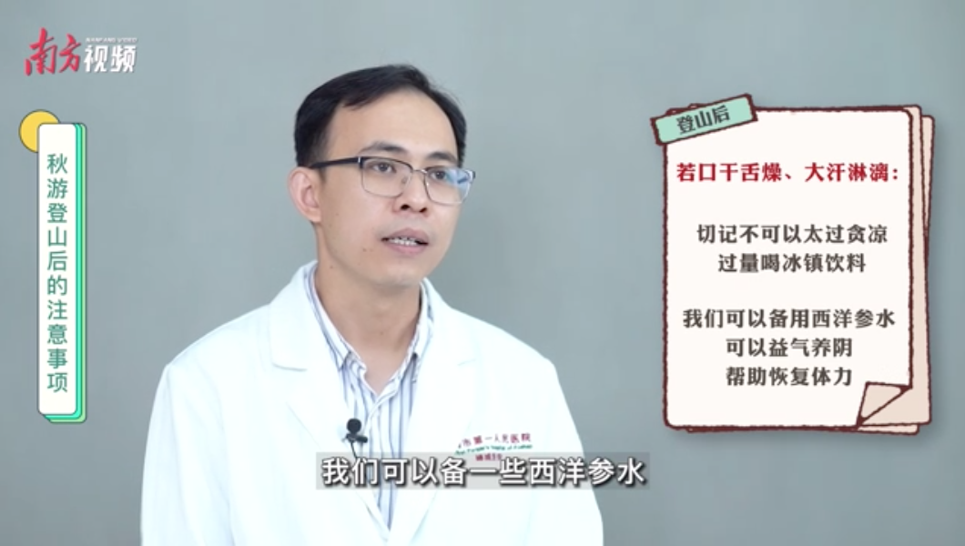 1.若口干舌燥,大汗淋漓,切忌太过贪凉,过量饮用冰镇饮料。可备用西洋参水,益气养阴,帮助恢复体力。