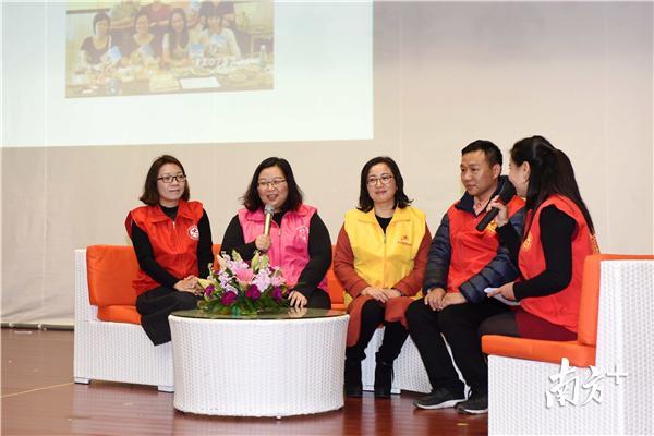 “志愿服务——源于心.始于行。”当天的分享活动,从园洲镇的分享开始,他们采用现场访谈的方式,由主持人进行提问,来自该镇的志愿者协会、东方星慈善会、爱心妈妈协会和曲艺协会4个服务队的志愿者,分别与大家分享个人和志愿服务组织的成长之路和开展文明实践活动的心得。