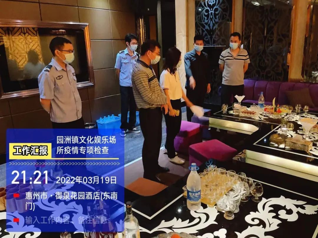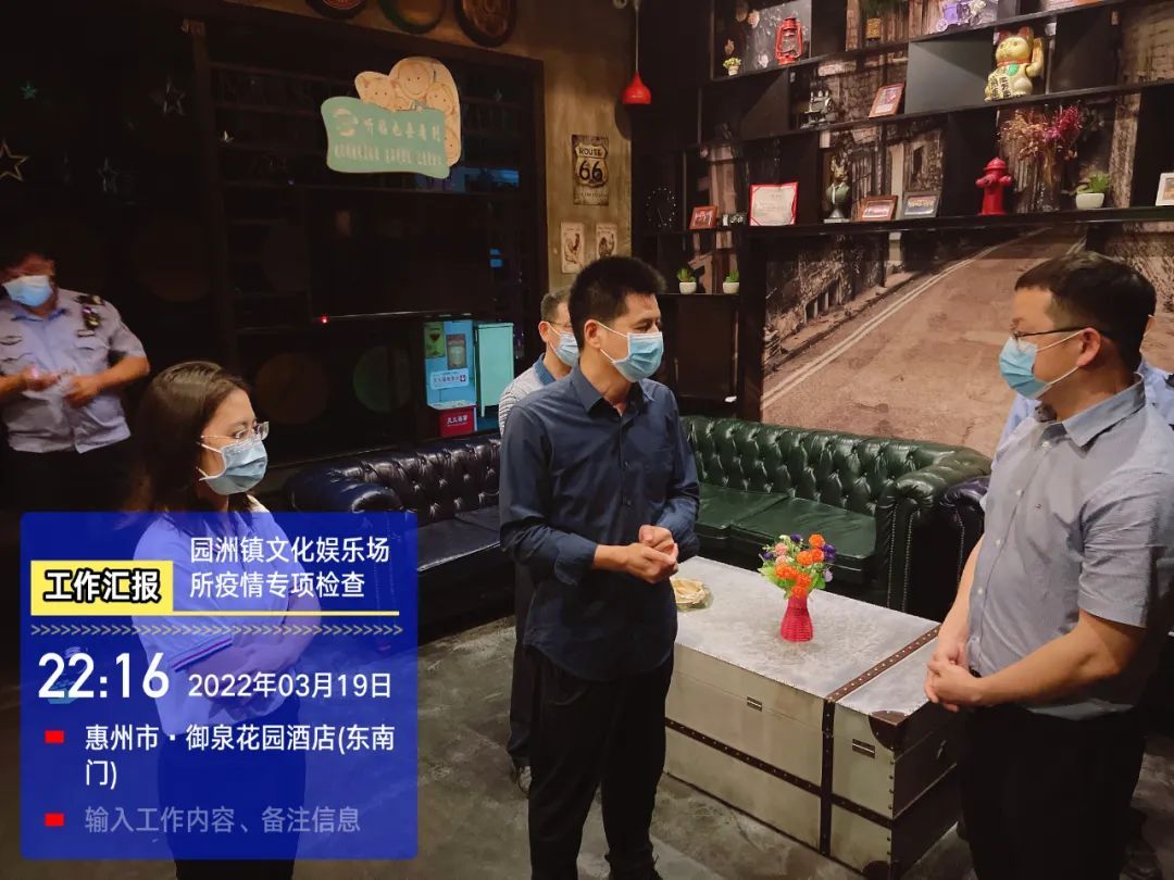 日前,博罗县文化广电旅游体育局联合园洲镇综合文化站、派出所对镇内的文化娱乐场所进行突击检查,以严格落实园洲镇各重点场所、重点行业领域常态化疫情防控相关工作部署,持续抓好文化娱乐场所秩序监管,筑牢疫情防控网。