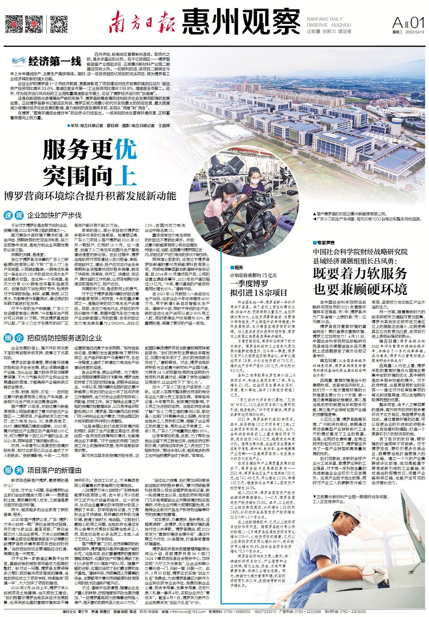 “成本更低、办事更快、服务更优、过程更透明”,在博罗,优化营商环境的具体行动从未停歇。博罗县提出,把2022年定为“营商环境综合提升年”,通过开展五大行动、20条措施,打造县域营商环境福地。