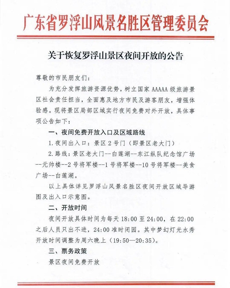 罗浮山景区6月1日恢复夜间开放啦,而且还免费。要去玩的小伙伴可以把夜游提上日程了。