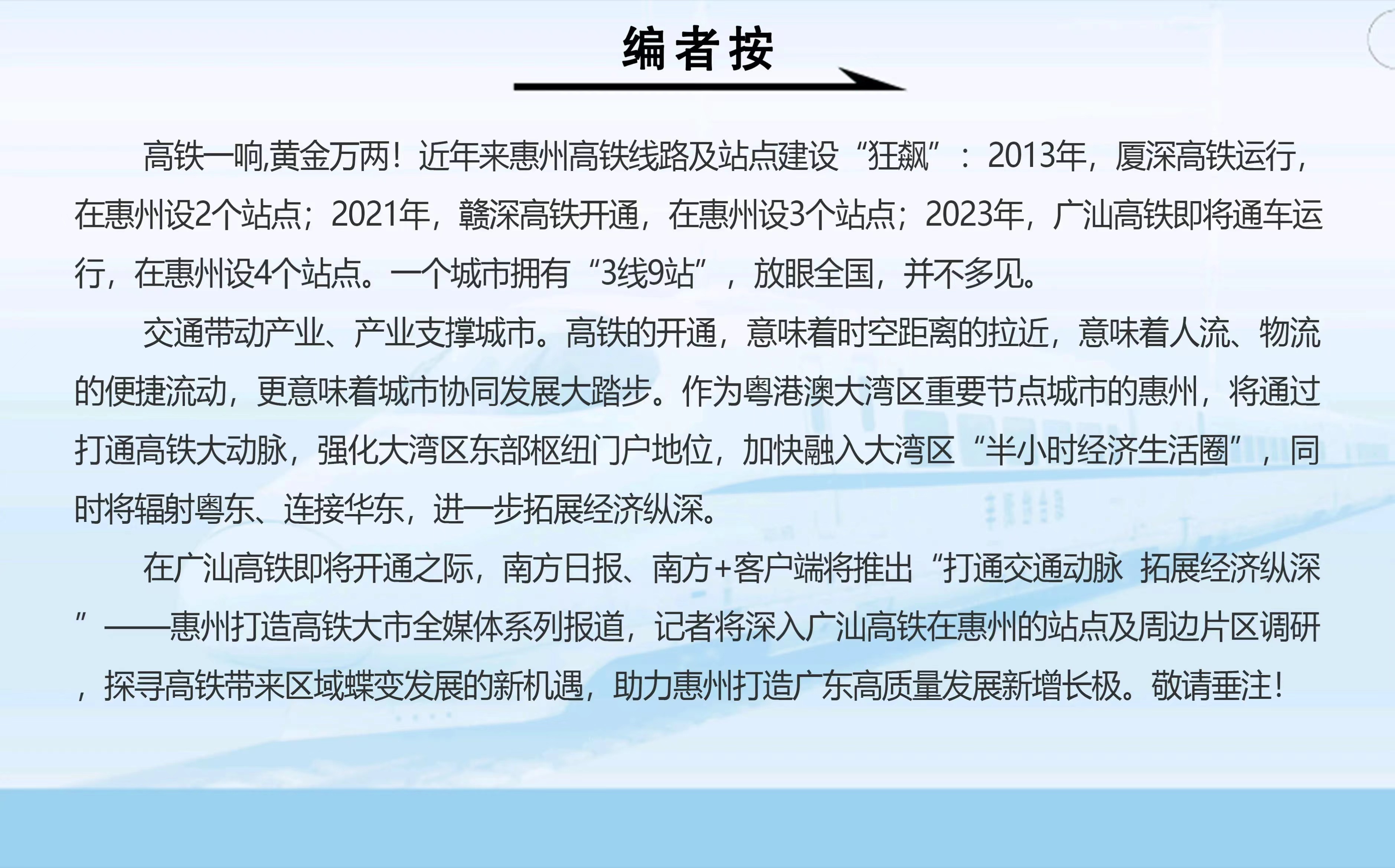 如果说2021年赣深高铁的通车让博罗首次跨入高铁时代,那么,广汕高铁的通车,则让博罗的两大核心区域与大湾区中心城市的通联更加紧密。