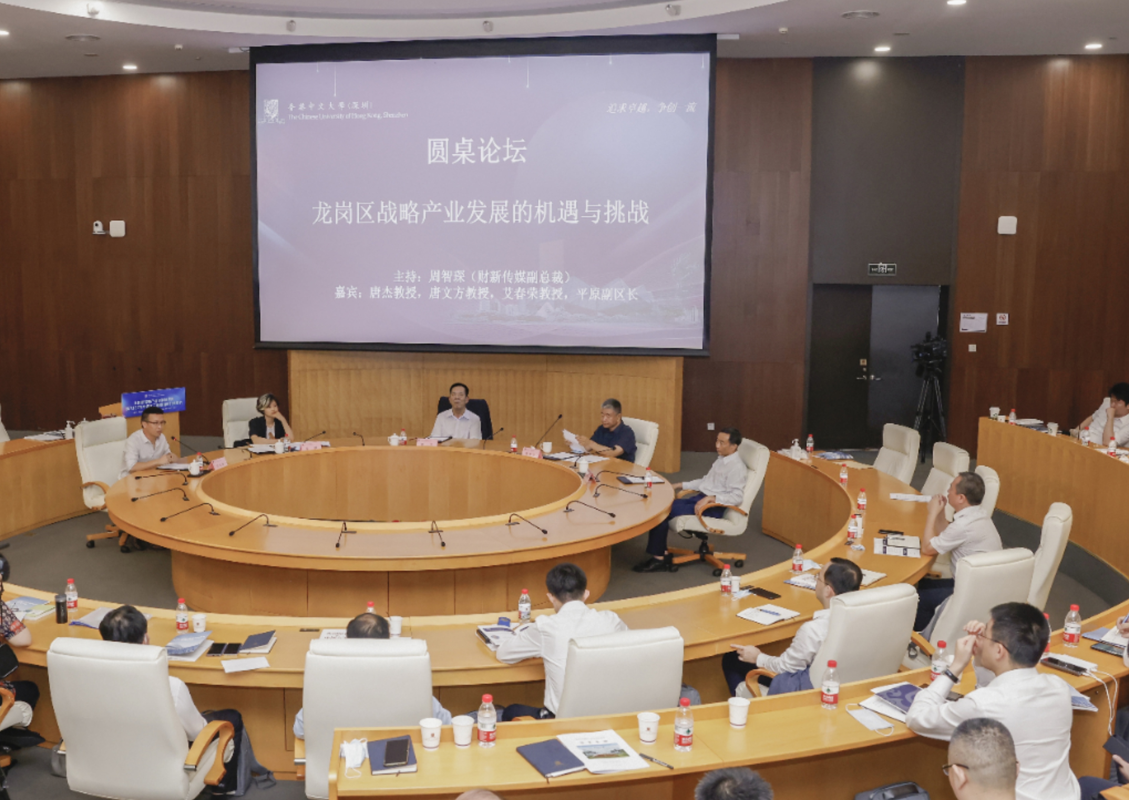在由财新传媒副总裁周智琛主持的龙岗区战略产业发展研修班圆桌论坛上,香港中文大学(深圳)唐杰教授、唐文方院长、艾春荣教授,龙岗区平原副区长参与其中,以龙岗区战略产业发展的机遇与挑战为主题,聚焦万亿级电子信息产业集群、深圳国际低碳城、大运深港国际科教城等龙岗区重要产业集群和重点项目,分别作主题发言和深入探讨,并与参训学员进行了互动问答。