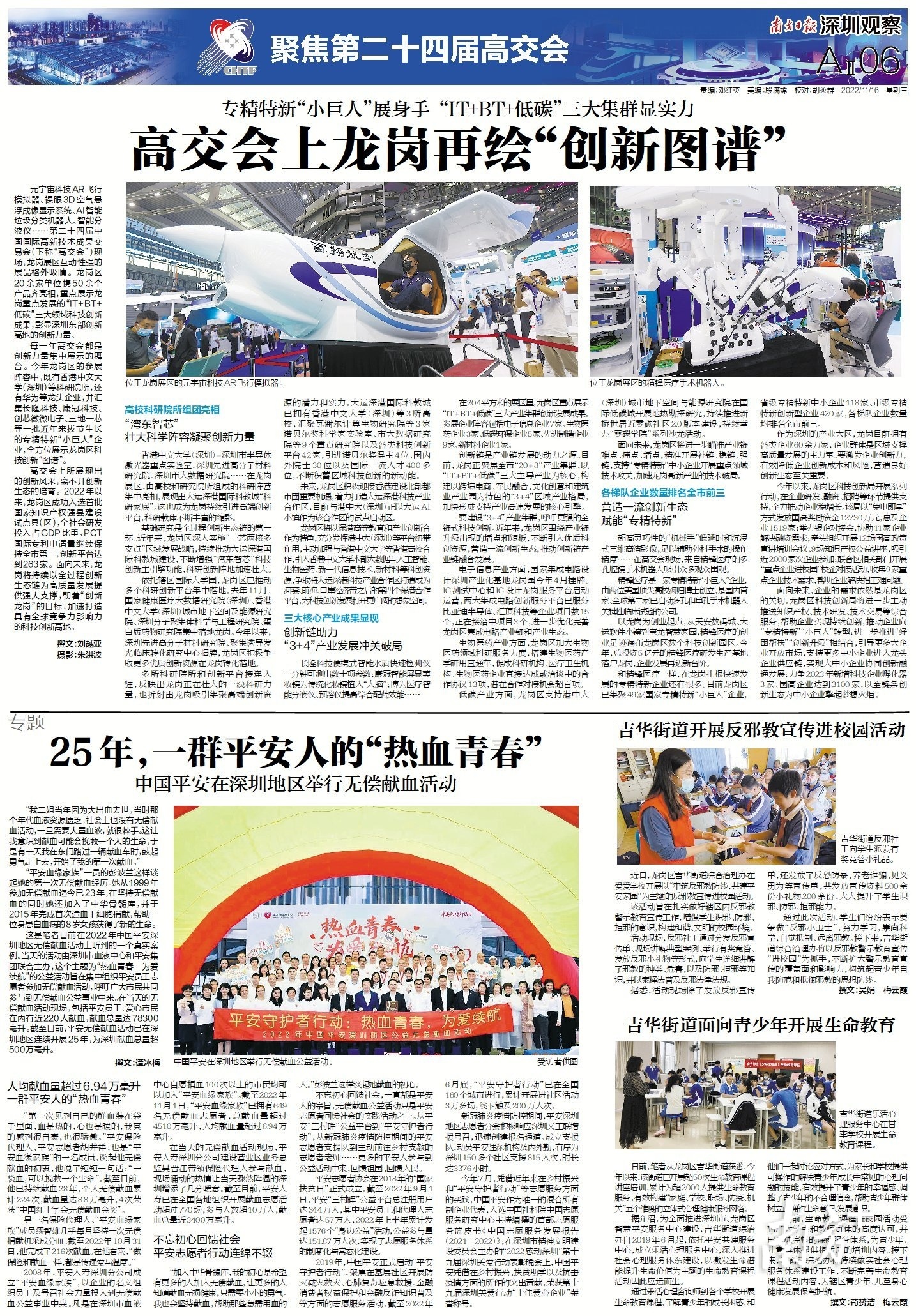 元宇宙科技AR飞行模拟器、裸眼3D空气悬浮成像显示系统、AI智能垃圾分类机器人、智能分液仪……第二十四届中国国际高新技术成果交易会(下称“高交会”)现场,龙岗展区互动性强的展品格外吸睛。龙岗区20余家单位携50余个产品齐亮相,重点展示龙岗重点发展的“IT+BT+低碳”三大领域科技创新成果,彰显深圳东部创新高地的创新力量。