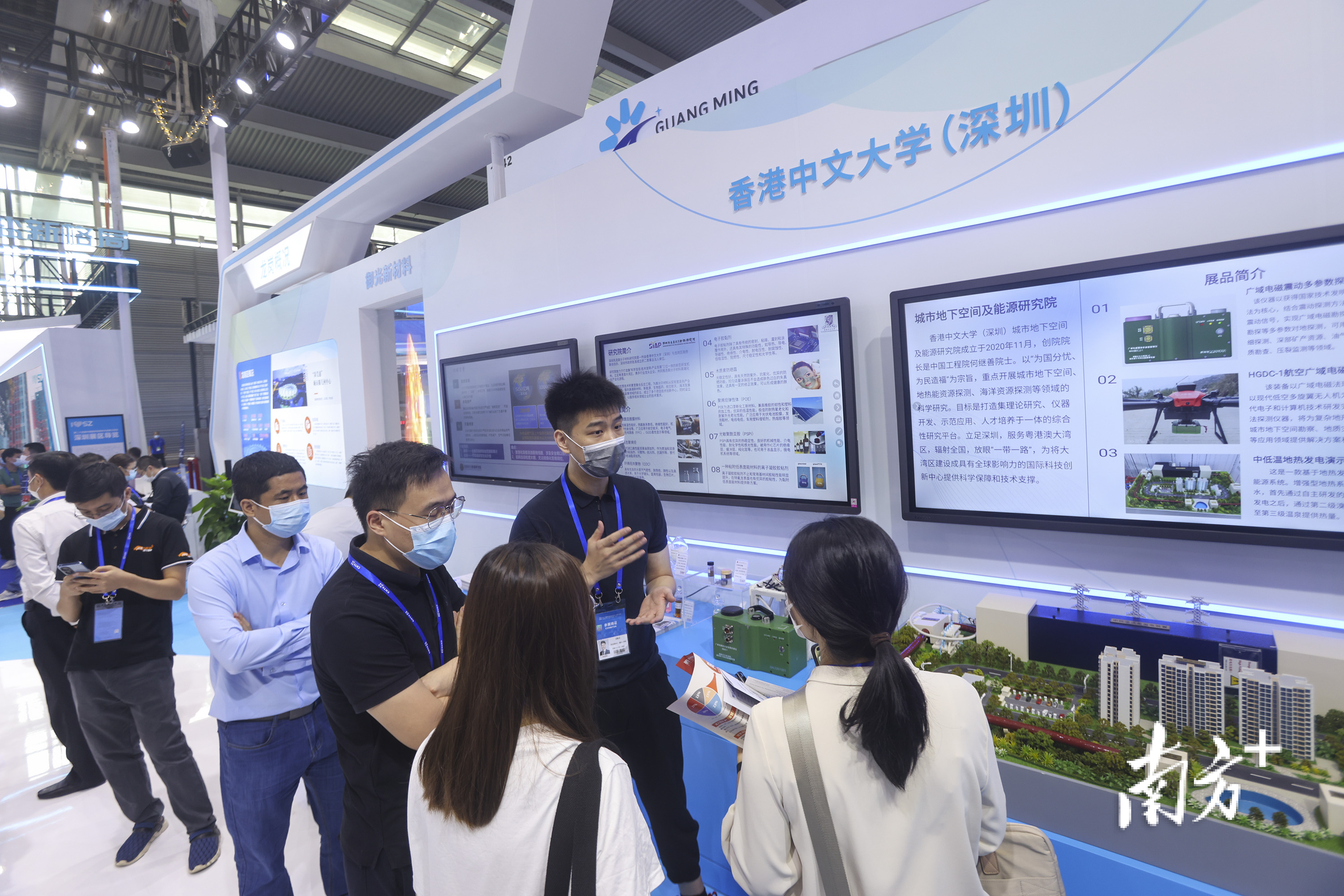 香港中文大学(深圳)-深圳市半导体激光器重点实验室,深圳先进高分子材料研究院、深圳市大数据研究院……在龙岗展区,由高校和研究院所组成的科研阵营集中亮相,展现出大运深港国际科教城“科研家底”。这也成为龙岗持续引进高端创新平台,科研载体不断丰富的缩影。