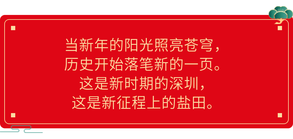 当前,盐田正处在天时、地利、人和前所未有的黄金发展机遇期,盐田人时刻保持“冲刺”姿态、“赶考”状态,乘风破浪、再创新业,全力答好现代化建设的时代命题。
