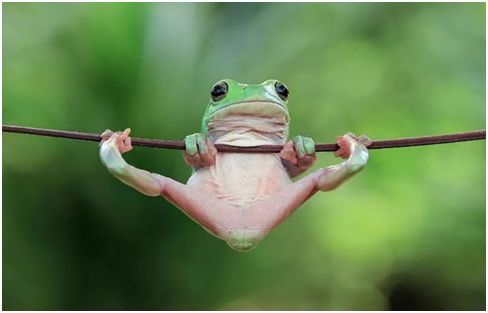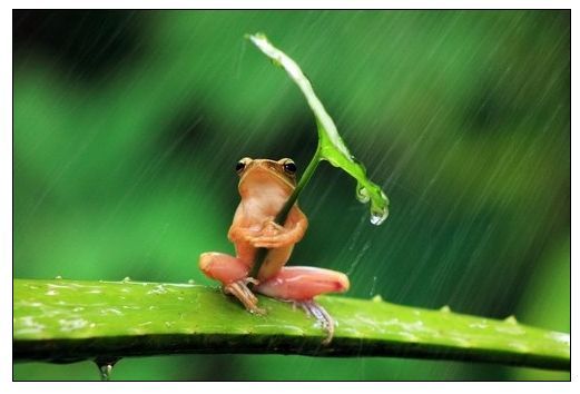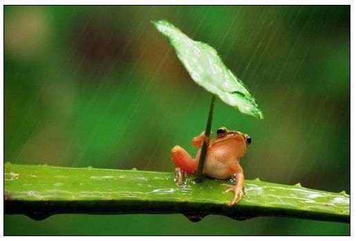 下面这张作品,来自印尼摄影师 Penkdix Palme,照片中一只细小的树蛙举着一片小叶子,似乎是在挡雨,一种萌萌有趣之感跃出画面。