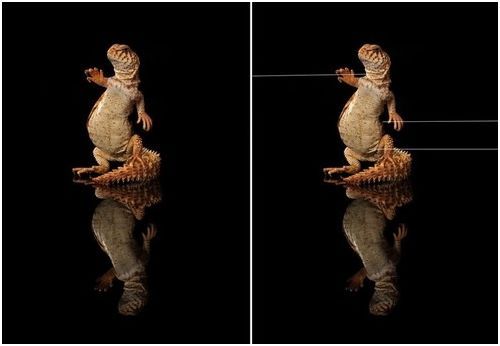 粘胶固定,用钉子、线牵引,都是这些残忍的拍摄者的惯用招数。拍完再把“道具”PS掉,便有了那些令人感动或者充满萌趣的图片了。