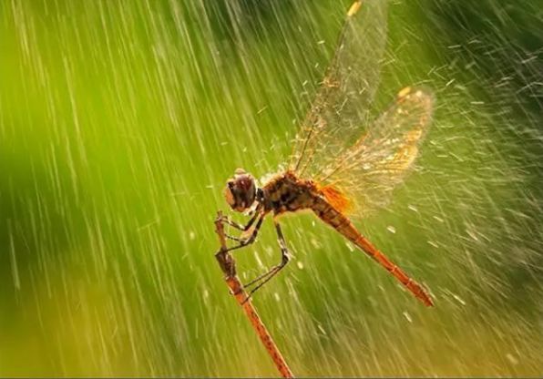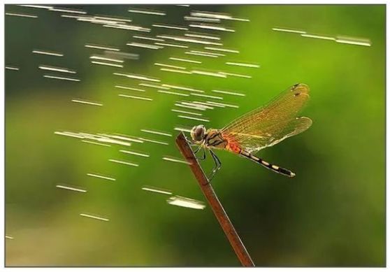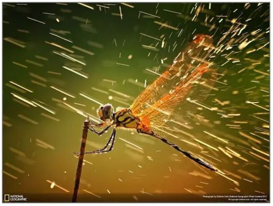 同样操作的还有这张获奖无数的雨中蜻蜓。图中的蜻蜓已经死去。