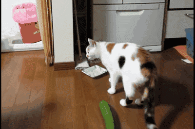 去年一段恶作剧视频在网上异常火爆:在猫后面放根黄瓜,可以瞬间把它们变成“飞猫”。
