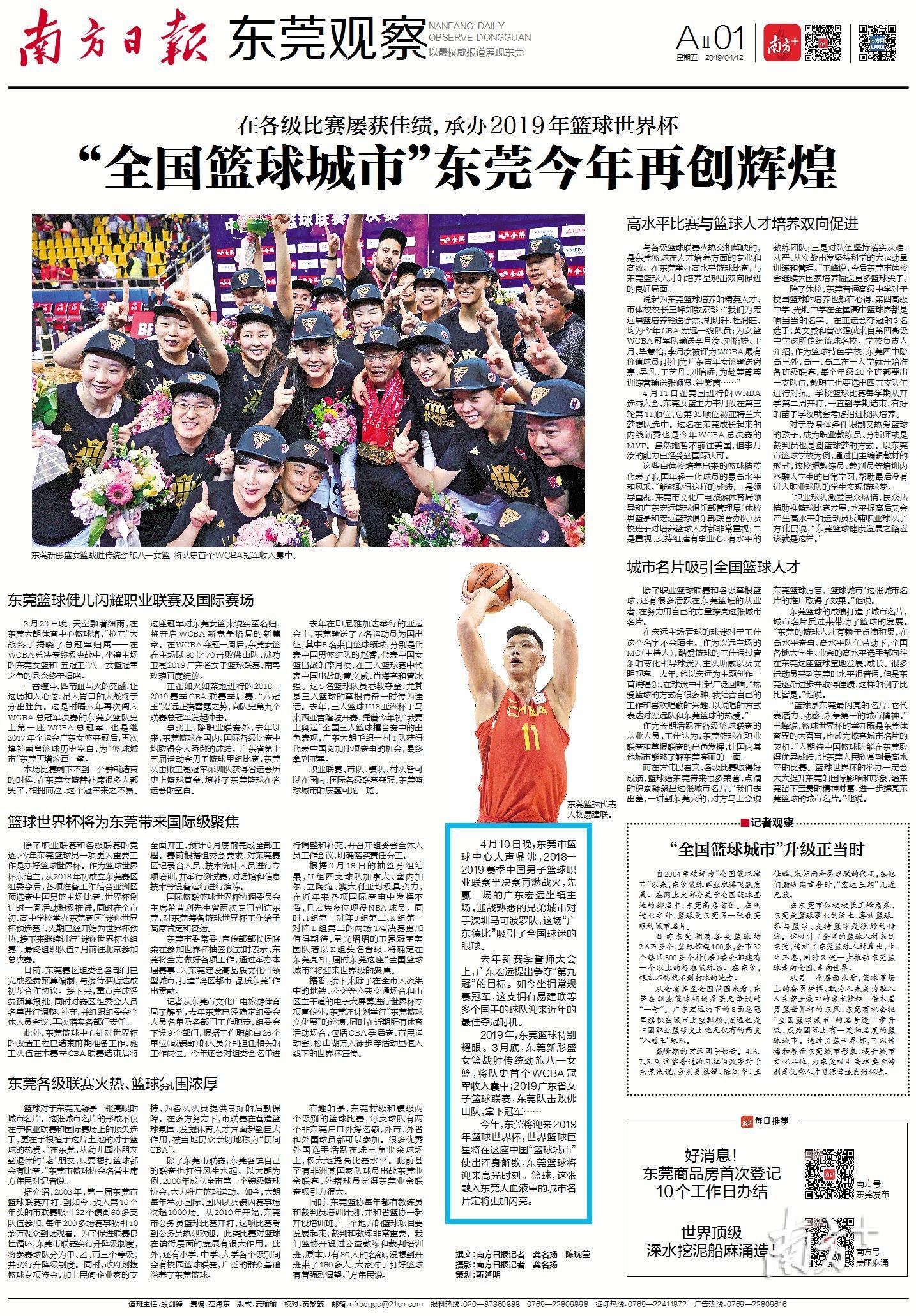 2019年,东莞篮球特别耀眼。3月底,东莞新彤盛女篮战胜传统劲旅八一女篮,将队史首个WCBA冠军收入囊中;2019广东省女子篮球联赛,东莞队击败佛山队,拿下冠军……