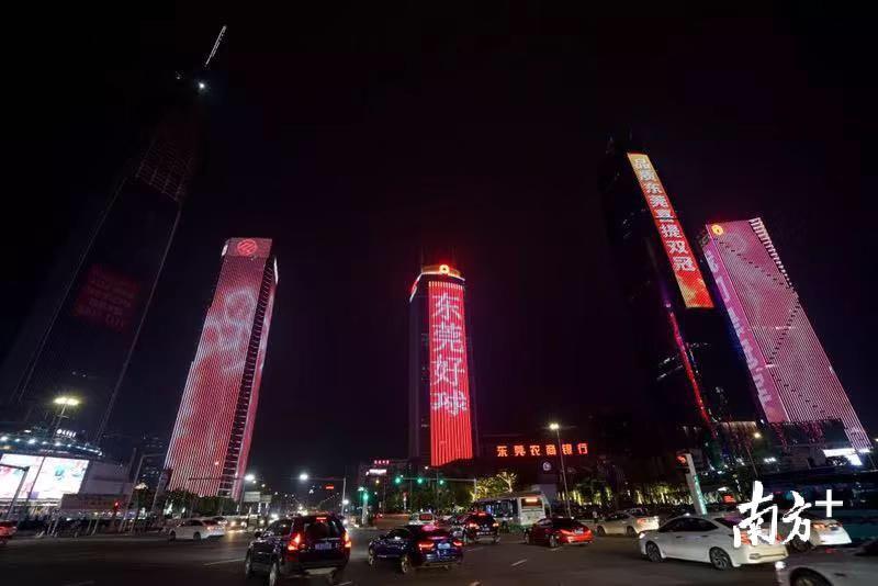 远在数千公里外的东莞,鸿福路CBD最高楼集体为宏远亮灯,“品质东莞喜提双冠”的字样闪耀在城市最高处。
