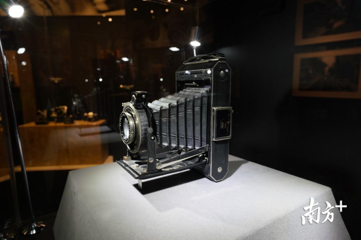 相信馆内能够让影友们驻足最久的区域,应该是杨子江古董相机展示区。这个区域的相机都是由香港摄影师杨子江先生捐赠。中间这台古董大画幅相机,是1921年奥地利生产的,非常具有年代感。