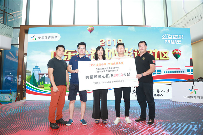 7月27日至8月20日,东莞市体育彩票管理中心联手东莞市跆拳道协会在公益体彩进社区活动期间向社会发起为永顺县小溪镇回龙九年制学校的爱心捐书倡议,鼓励更多热心市民加入体育公益中,为体育事业和全民健身运动的发展作贡献,通过自己随手的行为,为公益事业奉献点滴之爱。