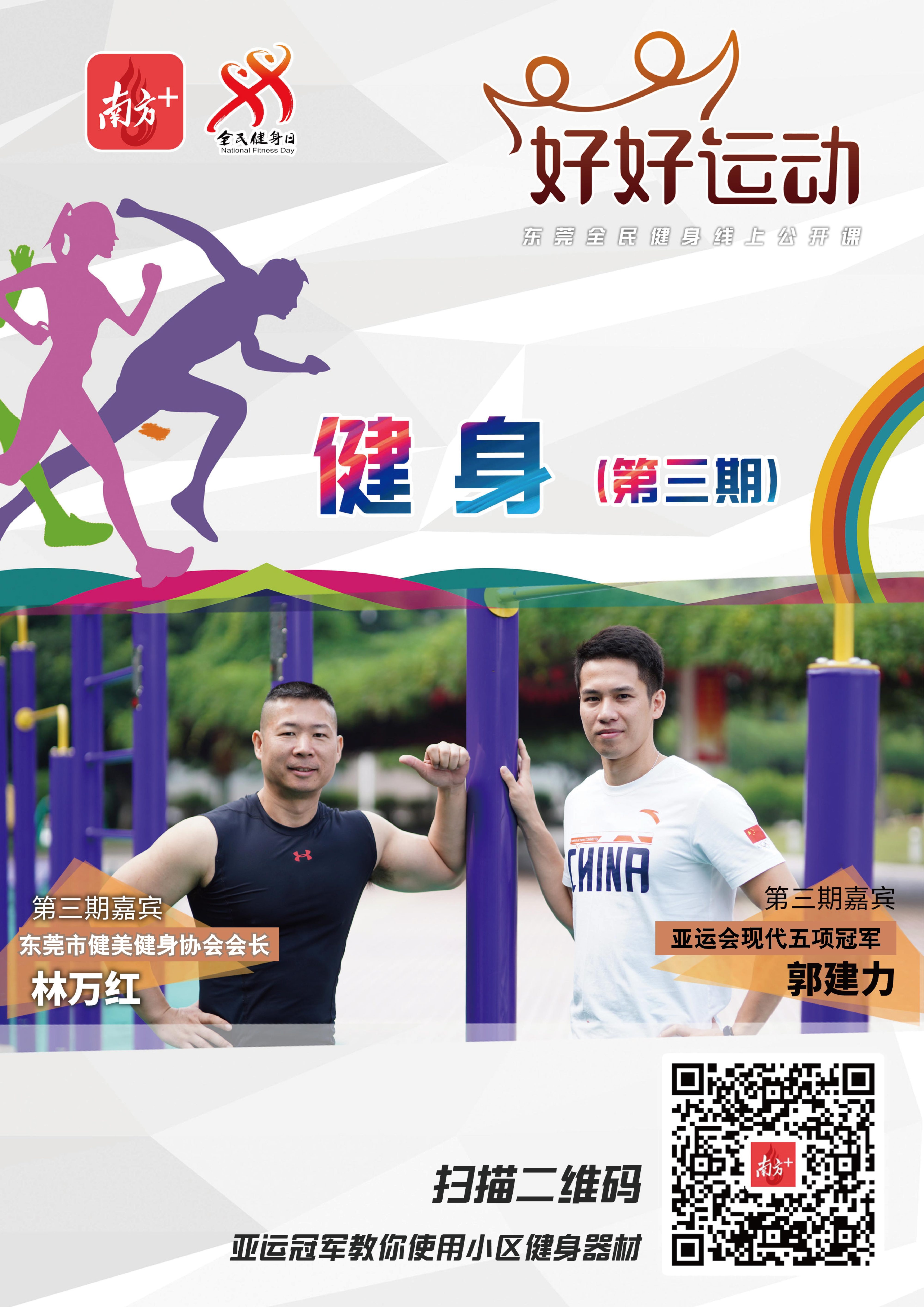 本期的《好好运动》我们请来亚运会现代五项冠军郭建力和东莞市健美健身协会会长林万红,在滨江体育公园,为大家现场演示如何正确使用器材达到健身效果。