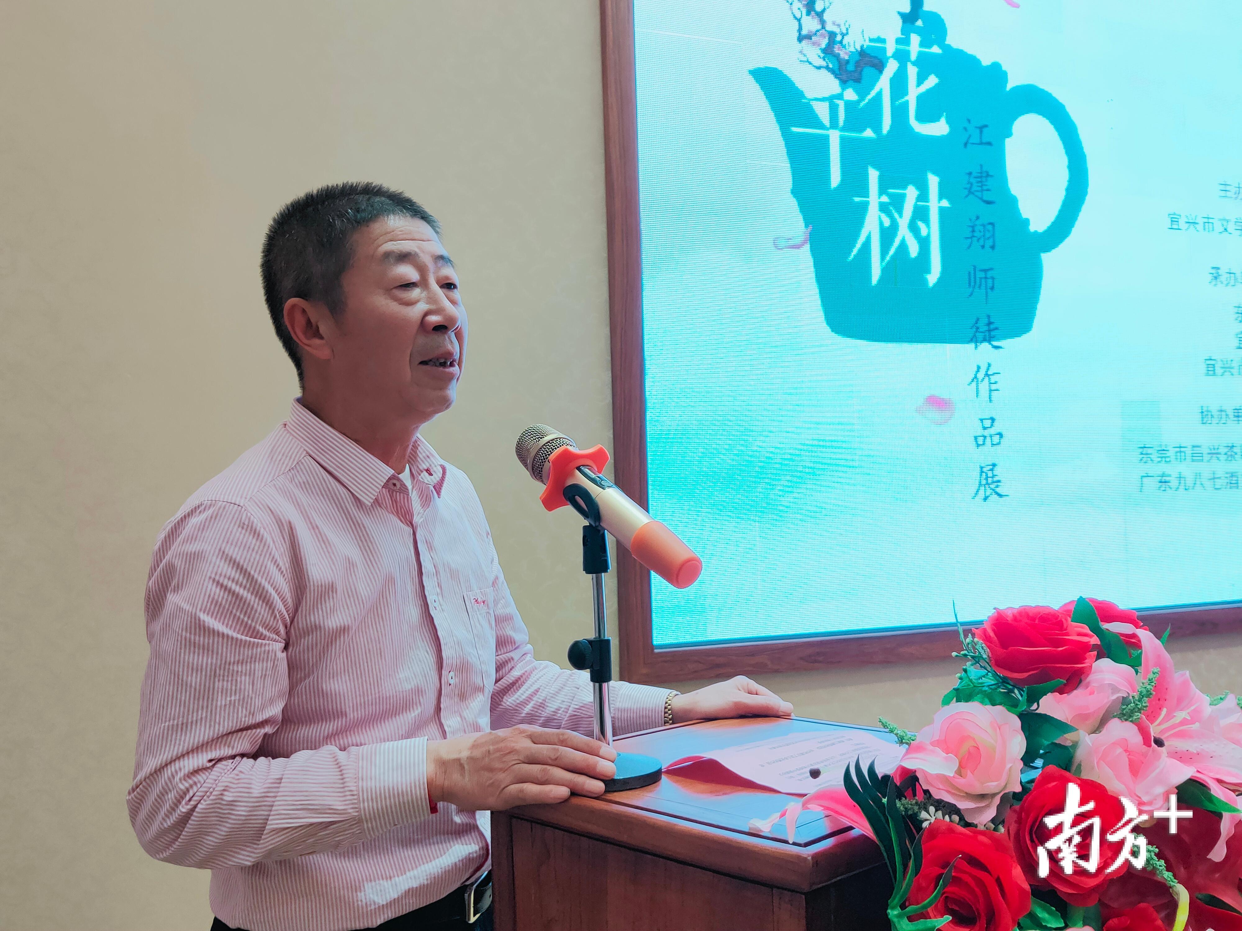 近年来,民间茶文化的盛行、超过40万吨的茶叶储存量,让东莞获得了“藏茶之都”的美誉。江建翔在开幕致辞上感谢东莞这片风水宝地给他们带来了更多的创作灵感,希望紫砂工艺及其文化也能在东莞开出“千树陶花”。