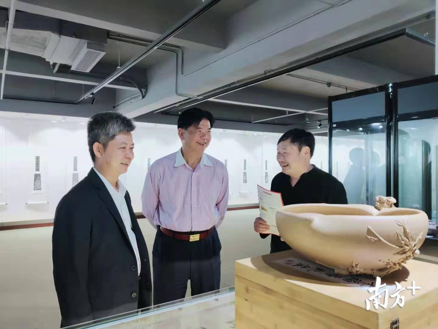 漫步在高埗镇东江画院的展厅里,艺术家们天马行空又富有创意的紫砂作品让人流连忘返。值得一提的是,江健翔大师特意为此次展览制作了两把壶,由著名花鸟画家吴冠南先生装饰,并由江苏省工艺美术大师、江苏省陶瓷艺术大师范建军刻绘。