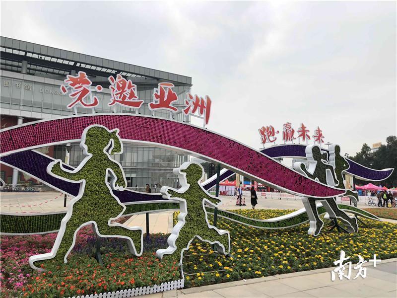 位于寮步镇的市篮球中心的“半马”终点,设置了一组主题花坛,营造热烈的赛事氛围。松山湖大道等沿线赛道两旁草坪,摆放时花、勒杜鹃花球等开花灌木进行造景,矮牵牛、一串红、孔雀草、勒杜鹃……五彩缤纷、争奇斗艳,打造了一条舒适优美的“彩色赛道”。
