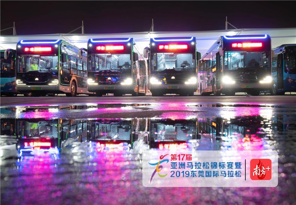 在赛前一周,交通等部门就开始发布封路、绕行、接驳等措施,给市民提个醒。根据安排,22日当天,轨道R2线发班时间提前至4:45分,东莞巴士派出了“蓝巴士、超萌微巴、黑金刚”共计237辆公交车,392名志愿者随时候命,为大家提供赛前摆渡车服务、存衣车服务、志愿者接送服务和运动员接送服务。此外,赛事起点周边的鸿福路地铁站、旗峰公园地铁站及玉兰大剧院至市体育馆还安排了3条公交摆渡线路,安排纯电动公交车辆98台。