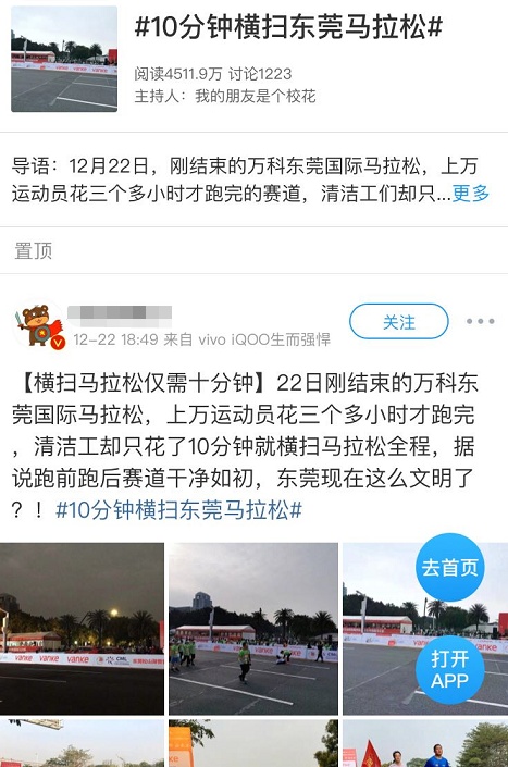 刚结束的东莞国际马拉松,数万名运动员花几个小时才跑完,清洁工却只花了10分钟就横扫马拉松全程,跑前跑后赛道干净如初。