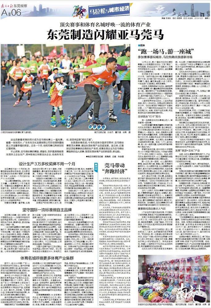 不止奖牌,亚马锦标赛的赛服、装备包、防护器具等都是东莞本土企业生产,其中既有以纯等龙头企业,也有车车文化、旅圣用品等“明日之星”。