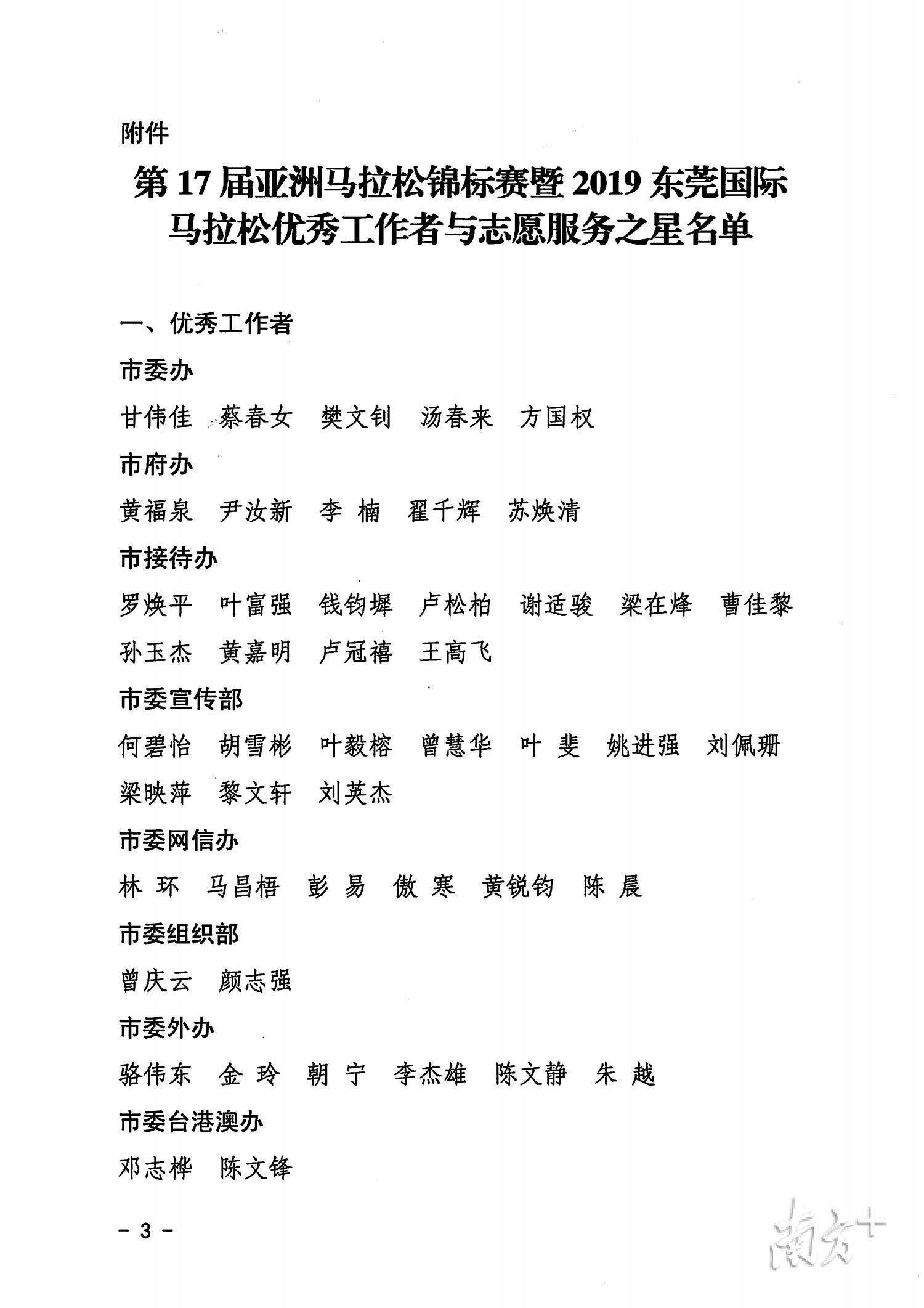 为总结成绩、表扬先进、弘扬精神、凝聚力量,现决定対第17届亚洲马拉松锦标赛暨2019东莞国际马拉松优秀工作者与志愿服务之星进行通报表扬。