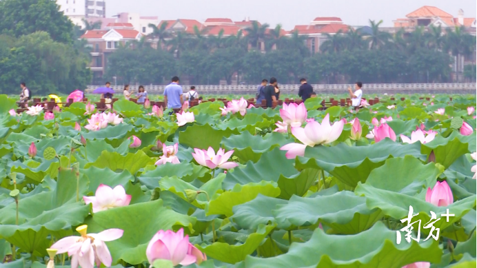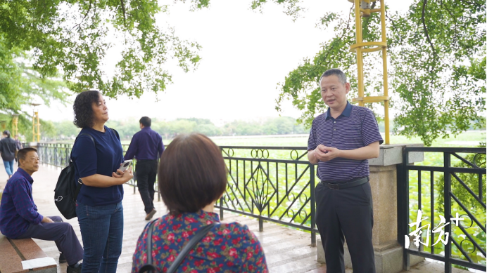 上午时分,东莞市桥头镇莲湖畔来往行人不断,有练声的曲艺搭档,有在“粤书吧”读书驿站翻书的读者,还有牵着宠物往来散步的行人。