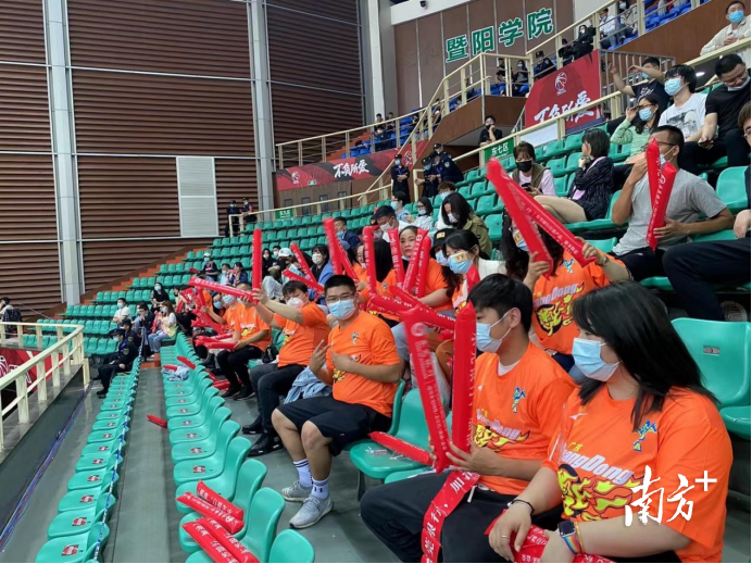 当晚,在球场看台上,东莞球迷大雄(化名)一边奋力喊着加油,一边为球队捏着一把汗。他是广东宏远俱乐部球迷联盟的负责人,从2012—13赛季跟队至今,已经近距离陪伴球队近10年。